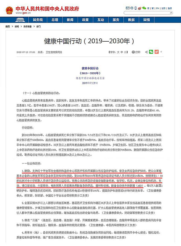 2019年10月17日至20日,“2019首届中国AED发展高峰论坛”在深圳大中华希尔顿酒店举行。 此次论坛是由国家卫生健康委员会医政医管局、广东省卫生健康委员会、深圳市卫生健康委员会指导,中国医院协会急救中心(站)管理分会和深圳市医学会联合主办,深圳市急救中心、深圳市医学会急诊医学专业委员会联合承办。 本次大会由中国医院协会急救中心(站)分会主任委员、北京急救中心主任张文中和深圳市医学会急诊专委会主任委员、深圳市急救中心主任周强共同主持。来自全国各地急救专家、学者、企业家、社会团体等400余人参加了本次论坛,参会人员围绕中国AED及院前急救事业发展现状与规划等话题进行深入探讨和学习。 这次论坛有哪些看点? 心脑血管疾病已成为国人健康的“第一杀手”,实践表明:自动体外除颤器(AED)的早期介入是目前针对心脏骤停最为行之有效的抢救手段。 本届论坛旨在全面贯彻落实“健康中国”战略,切实解决心脑血管疾病救治问题,有效提升我国院前抢救成功率,更好地为人民群众提供优质高效的急救医疗服务。 本届论坛以“健康、发展、创新”为主题,会议主要围绕以下几个方面展开: 中国AED建设现状与展望 多角度、多维度探讨国家和地方急救立法如何有利于推动AED在公共场所的使用 政府如何推动符合中国国情的AED发展规划 中国AED管理系统与急救指挥的信息化整合 探讨如何构建多层次、标准化的公众急救知识和技能培训体系及质控体系 中国AED体系标准化建设及规范化管理的探索 社会团体、AED生产厂商如何助推AED的发展等 AED主题演讲 嘉宾精彩发言 圆桌会议 除了主题演讲外,此次会议还设置了三大分会场,分别进行“中国特色急救体系建设”、“AED标准化建设及规范化管理”、“AED配置面临的困难与挑战”为主题的圆桌会议,与会的专家、学者及企业家畅谈AED现状及未来,为救命神器AED的普及和院前急救的发展积极建言献策。 深圳全面推出“公众电除颤计划”经验分享 在美国、欧洲等发达国家,AED的应用已经相当普及。据有关资料统计,美国每10万人配有AED的数量为317台,日本为555台,荷兰695台,奥地利544台,挪威378台,丹麦311台…… 对标发达国家,近年来,深圳市积极贯彻落实党中央实施“健康中国战略”,从2017年起,深圳开始着手在全市公共场所配置AED,并将该项目纳入深圳市政府民生重点工程,从立法和政策等层面给予全方位保障。随着AED在深圳公共场所的大量投放,相关急救知识培训的普及,提升了深圳院前急救的成功率,全民急救能力得到显著提高,市民的安全感也得到进一步增强。 自2017年深圳启动“公众电除颤计划”实施以来,安装在公众场所的AED共参与现场抢救20人次,已成功救治8名患者(其中,机场2人,地铁4人,体育馆1人,社康1人)。 2019年,根据《深圳市政府关于印发2019年民生实事的通知》(深府函[2019]38号)明确要求:开展深圳市公共场所全自动除颤仪(AED)配备项目(三期),购置2000台全自动除颤仪(AED),安装在人口比较密集的公共场所。为此,政府财政给予支持。预计这一期AED配备项目完成后,深圳市每10万人口配备AED数量在二期配备后的7.5台增长至约17.5台(按服务人口2000万计算)。 深圳市医学会急诊专委会主任委员,深圳市急救中心主任周强 未来,深圳将按照《“健康中国2030”规划纲要》要求,进一步健全医疗急救体系,继续完善相关立法,着力构建全社会共同参与的急救体系,充分体现深圳经济特区以人为本的发展理念。 一是继续加强公众急救知识宣传与培训,提高市民的急救意识和能力。 二是建设院前医疗急救分级调度系统,调度员在派出急救车的同时通过电话指导病患或身边人进行自救互救,填补呼救后急救车到达前的黄金急救空档期,将抢救病患的战线提前到呼救120电话后,实现急救前移。 三是探索建立科学化、信息化、智能化的AED动态管理平台,将AED设置有关信息纳入120调度系统,在120调度员接到报警电话过程中,告知报警人附近的AED所在位置,让患者尽快得到有效抢救,同时,AED一旦被启用,120便能收到信号进行后续定位、数据分析,实现动态管理、信息共享,提高各类病患救治效率。 《健康中国行动》推动AED的快速普及 《健康中国行动(2019—2030年)》中,已明确提出了未来急救培训持证人员比例要求,并明确指出要完善公共场所急救器材(尤其是AED)的配备。希望在政策的指引下,以此次首届中国AED发展高端论坛为契机,快速推动AED的普及和行业的发展!