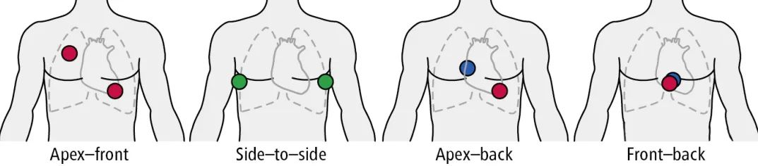 正确的贴放位置能最大程度保障电流能够充分经过心肌,并降低经胸阻抗。对于逆转室颤和心跳骤停后及时给予心肺复苏抢救治疗可能有更好的效果。