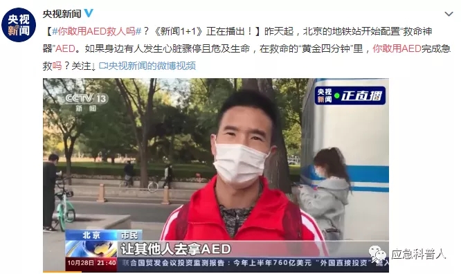 从上个月北京的地铁站开始配置“救命神器”AED。如果身边有人发生心脏骤停且危及生命,在救命的“黄金四分钟”里,你敢用AED完成急救吗?《新闻1+1》进行了相关的报道,也普及了使用AED造成受助人损害不承担民事责任的相关法律知识。