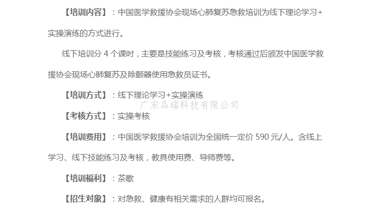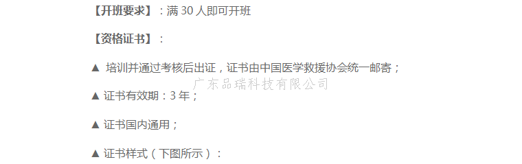中国医学救援协会应急救护培训考证详情:
