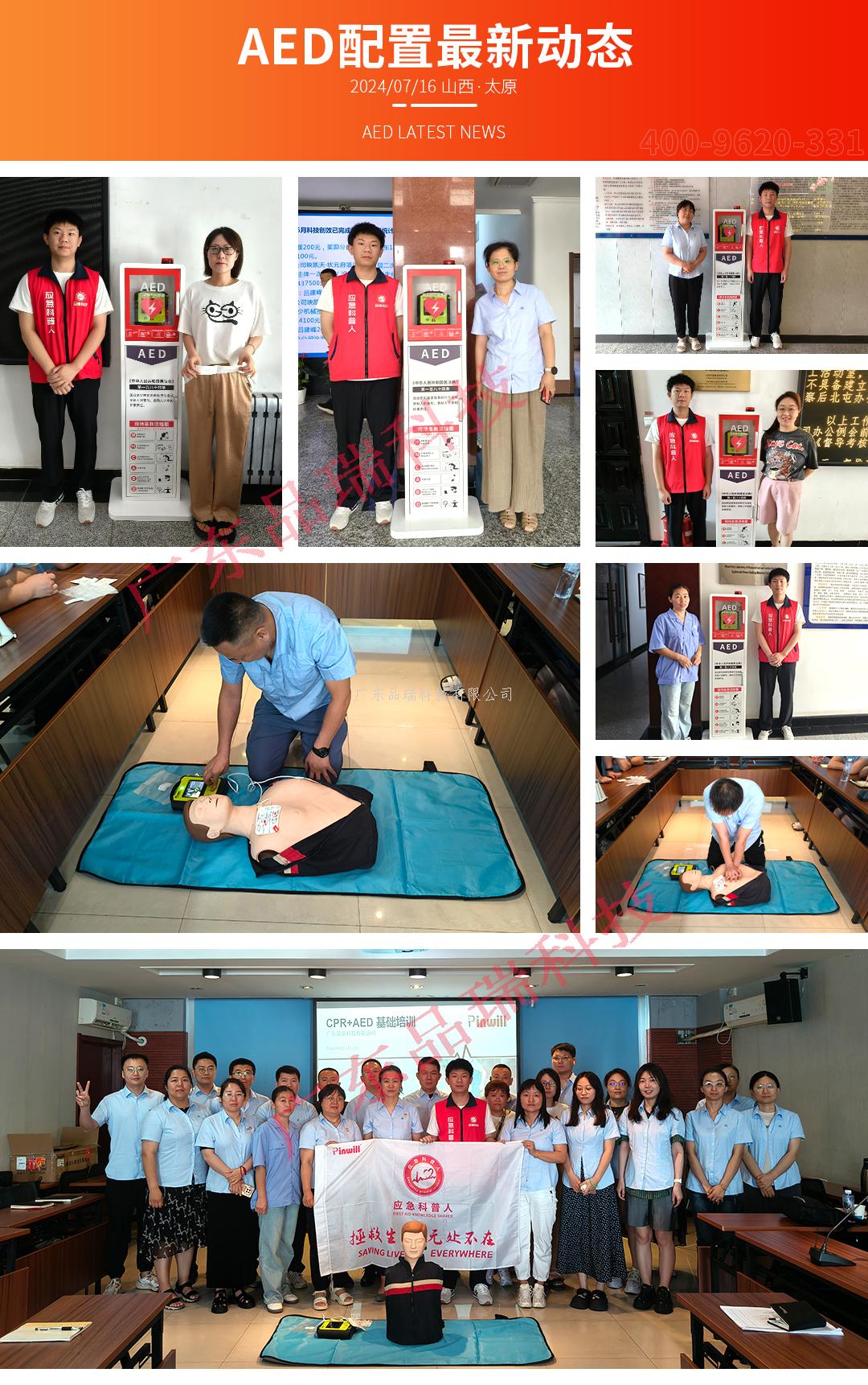 2024年7月16日,品瑞科技工作人员来到山西太原,助力山西四建集团有限公司配置自动体外除颤器(AED)五台,这批AED通过立式机柜的形式进行配置,并摆放到适当的位置上。AED急救太重要了!企业通过配置AED,学习急救知识能够更有效地守护员工生命安全。
