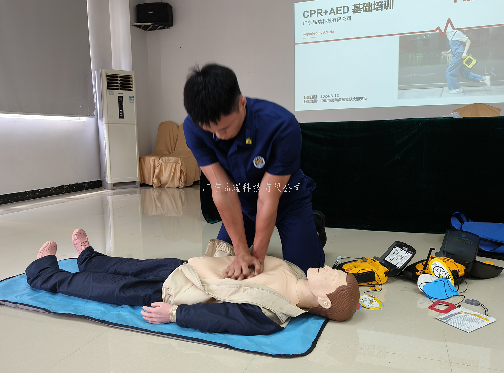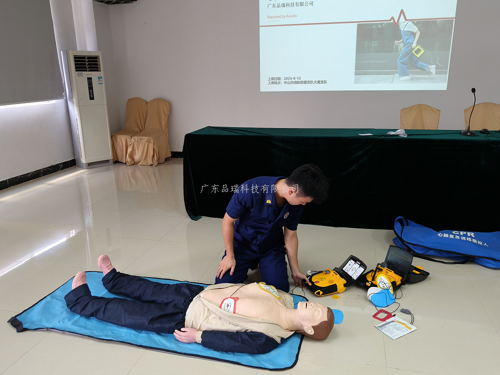 8月12日,品瑞科技工作人员来到中山市帮助消防队更换AED耗材并加强应急救护培训演练,为应对突发风险做好充分准备!你们的电池、电极片到期了吗?赶紧也查看一下吧!