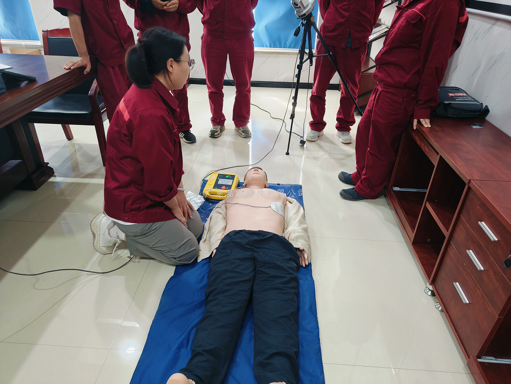 我们也同时在吕梁市应县晶辉光伏电站为所有配置AED的电站员工进行了一场线上线下同步的AED+CPR急救培训。